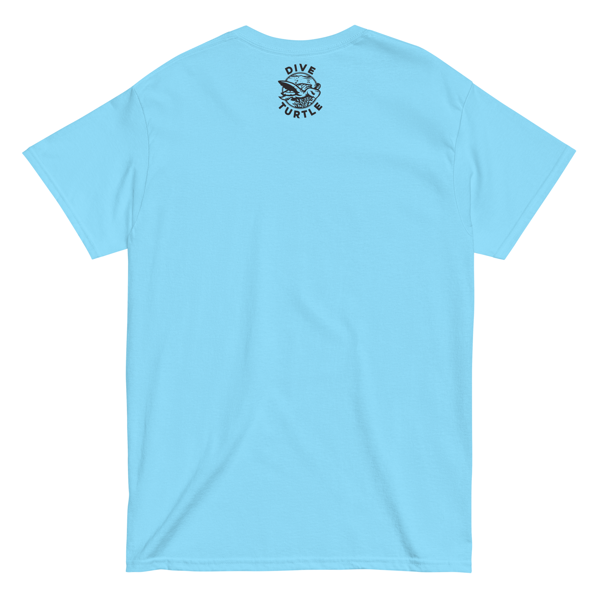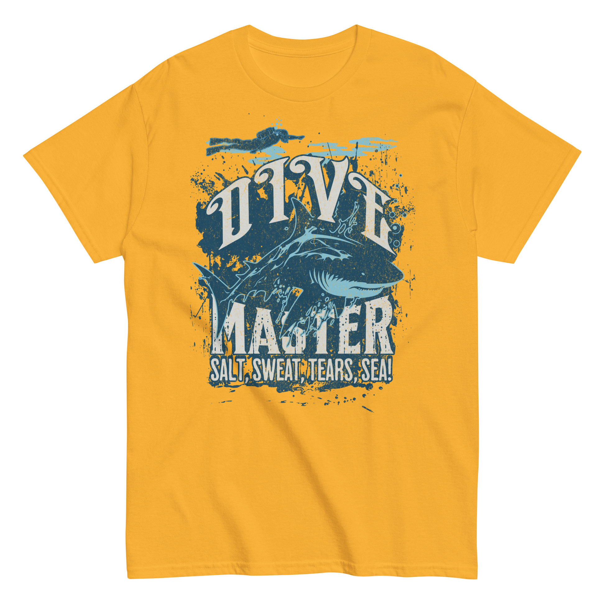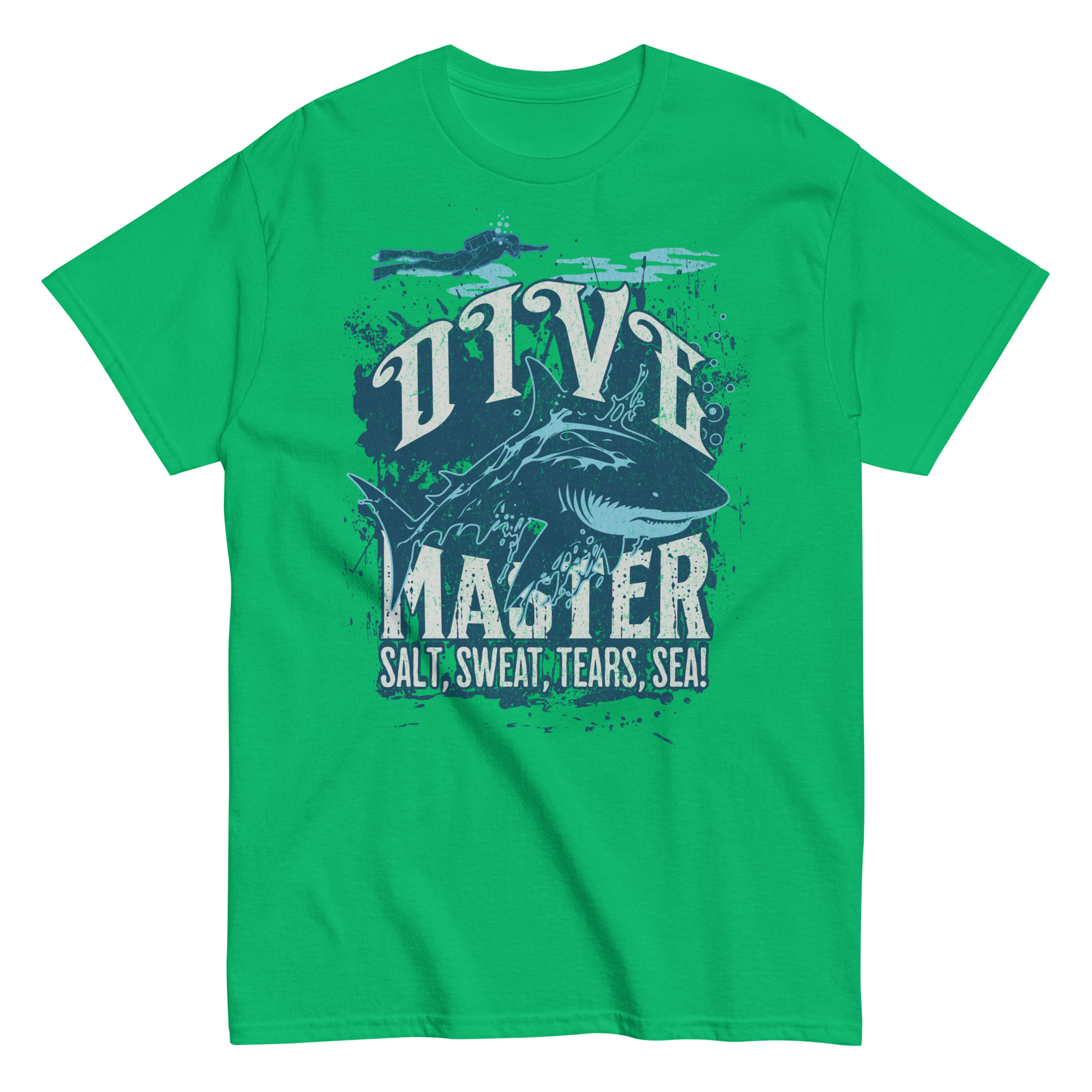 This T-shirt is perfect for any diving enthusiast or professional. It features a bold and eye-catching design with the words "Dive Master" printed prominently across the chest in sleek, stylish font. Below the text, there's an impressive image of a shark, beautifully illustrated to capture its power and grace. The shark appears as if it's swimming towards the viewer, with its fin cutting through the water, creating a dynamic sense of movement. Made from soft, breathable cotton, this T-shirt is both comfortable and durable, ideal for everyday wear or as a statement piece on your next dive trip.